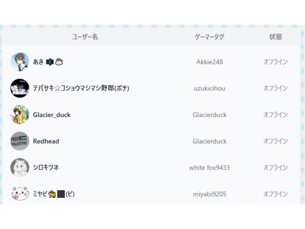 サーバーの稼働状態と、現在参加中のプレイヤーの一覧がリアルタイムで確認できるようになります。