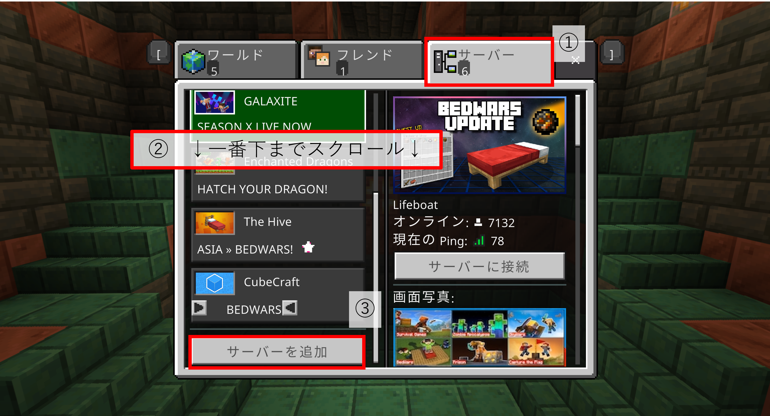 「サーバー」タグで一番下までスクロールし、「サーバーを追加」をクリック